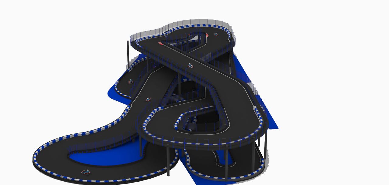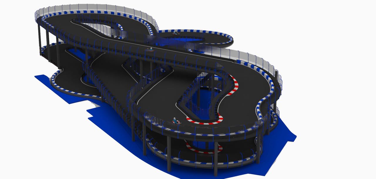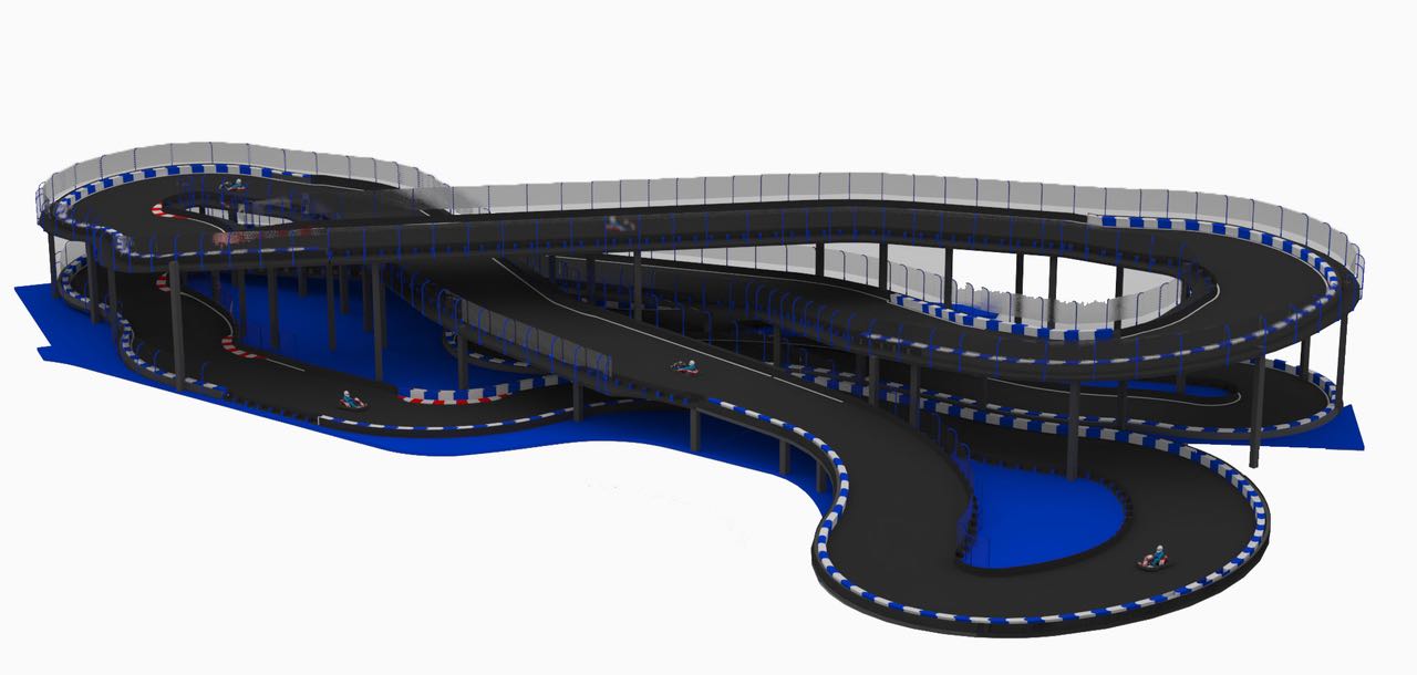 Our client contacted us wanting to transform an old steel factory into a karting theme park with a total of 7 different tracks including an internationally certified outdoor karting track. The 7 tracks consist of an outdoor adult’s track, outdoor kids track, indoor 3-level adults track, junior track, drift track, kids track and a driving school track.